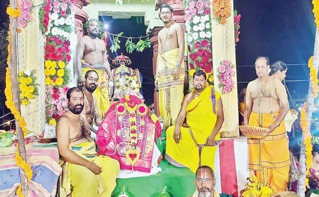 ఏలూరు జిల్లా నూజివీడు పట్టణ పరిధిలోని గొల్లపల్లి రఘునాథస్వామి తిరు కల్యాణ బ్రహ్మోత్సవాల్లో భాగంగా స్వామి వారి కల్యాణం కన్నుల పండువగా జరిగింది. అనంతరం అశ్వ వాహనంపై గ్రామోత్సవం నిర్వహించారు. తొలుత మంగళ వాయిద్యాలతో తీర్థపు బిందె, నిత్యార్చన, నిత్యహోమం, శ్రీరామాంజనేయ మూలమంత్ర హవనం, బలిహరణ, మంగళ శాసనం, తీర్థప్రసాద గోష్ఠి, నిత్యార్చన, నిత్యహోమం, రాత్రి 10 గంటల నుంచి గజవాహనంపై ఎదుర్కోలు ఉత్సవాలను నిర్వహించారు. అనంతరం స్వామి కల్యాణోత్సవాన్ని వేదమంత్రోచ్ఛరణల నడుమ వైభవంగా నిర్వహించారు. సోమవారం రాత్రి ఏడు గంటలకు డోలా మండపం వద్ద ఊంజల సేవ, హను మంత వాహనంపై గ్రామోత్సవం నిర్వహించారు. కల్యాణోత్సవాన్ని తిలకించేం దుకు నూజివీడు, ఉమ్మడి కృష్ణా జిల్లా నుంచి భక్తులు అధిక సంఖ్యలో తరలి వచ్చారు.