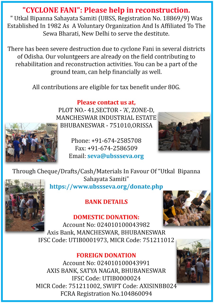తుఫాను ప్రభావిత ప్రాంతాల్లో రాష్ట్రీయ స్వయంసేవక్ సంఘ్ కార్యకర్తలు సహాయ కార్యక్రమాలు నిర్వహిస్తున్నారు. అత్యవసర సామగ్రిని బాధితులకు అందించేందుకు స్వయంసేవకులు, ఉత్కల్ విపత్తు సహాయ సమితి కార్యకర్తలు ప్రయత్నిస్తున్నారు.