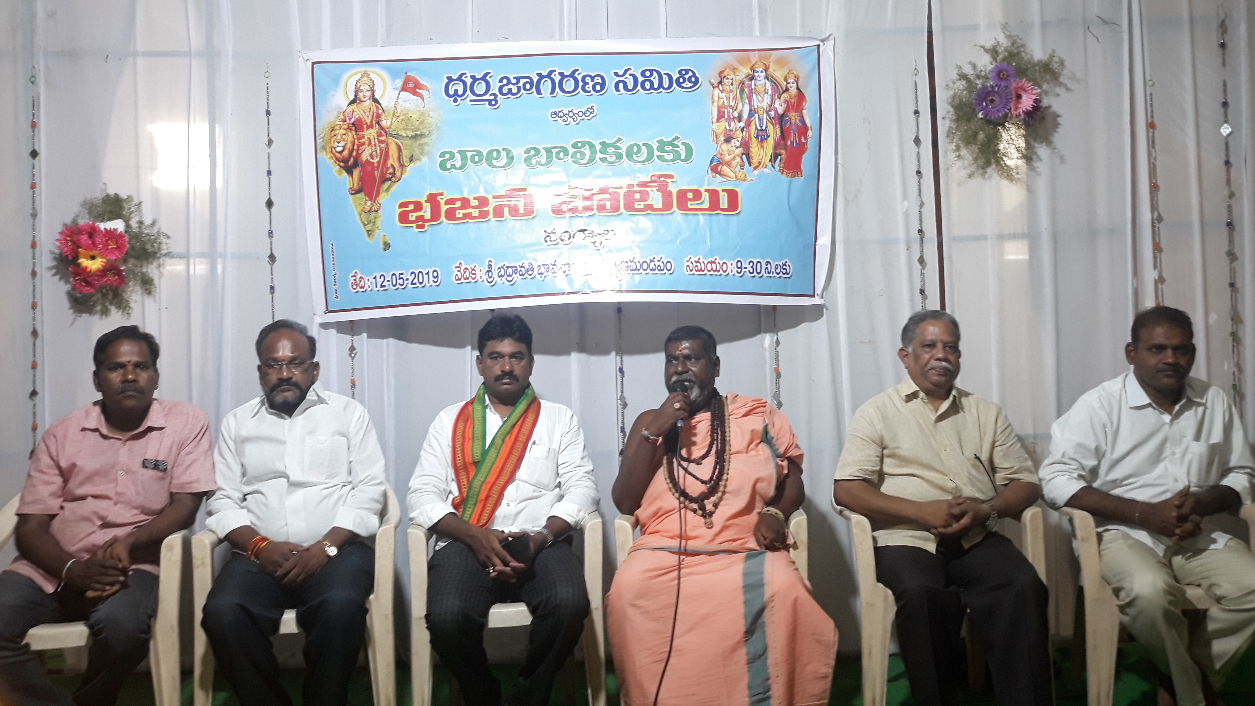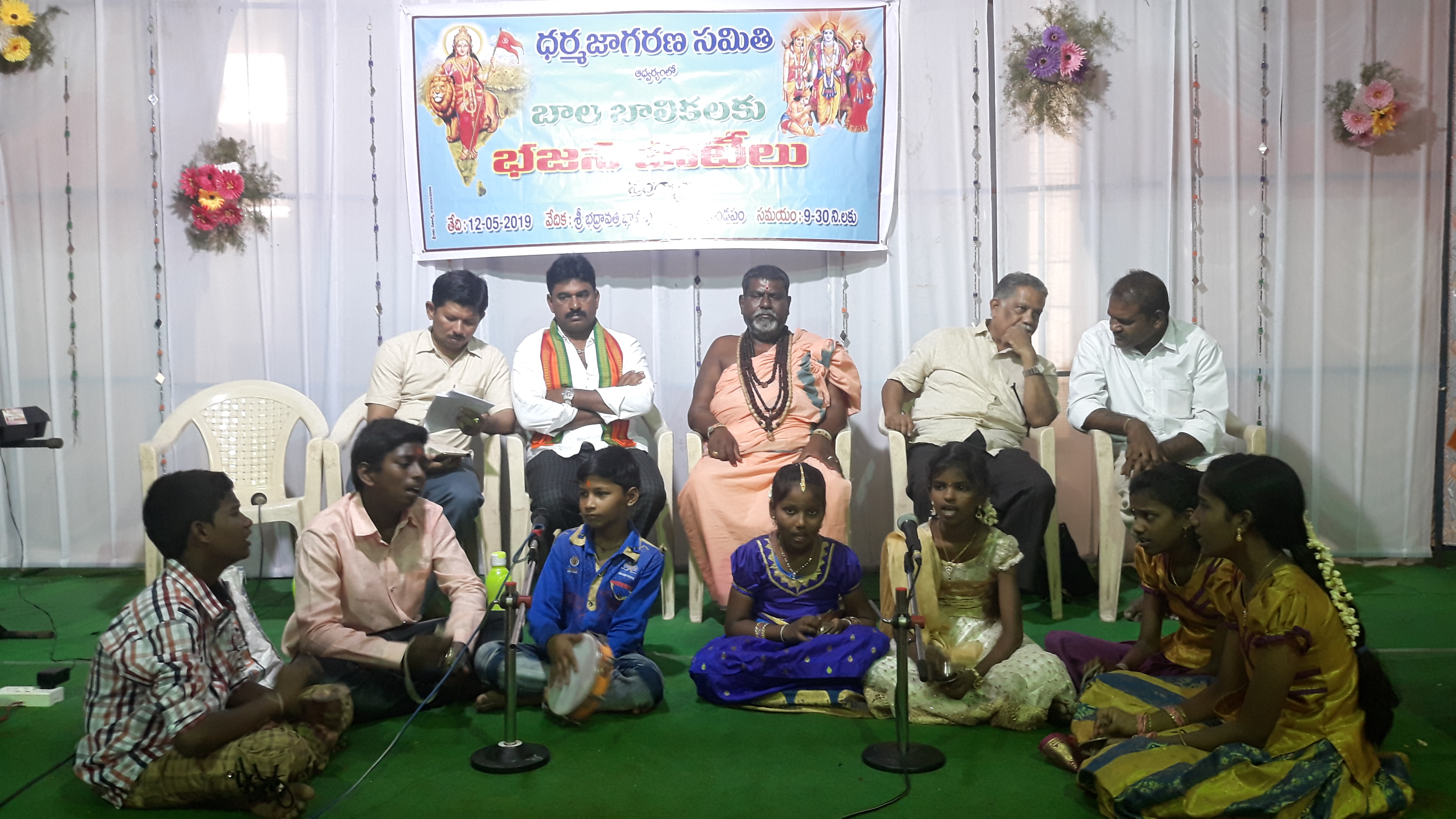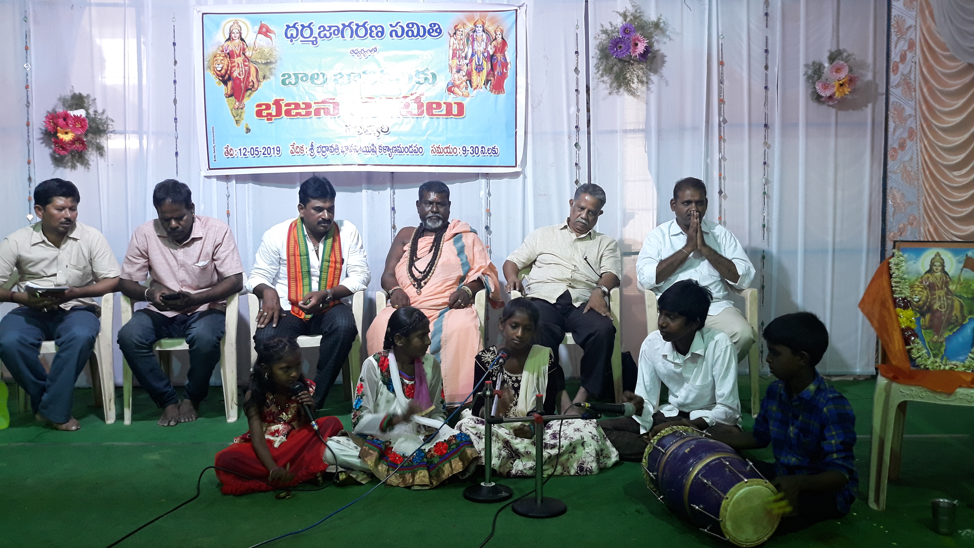 12. 5. 2019 ఆదివారం స్థానిక భద్రావతి భావనా రుషి ఆలయ కళ్యాణ మండపంలో ధర్మ జాగరణ సమితి ఆధ్వర్యంలో లో భజన పోటీలు నిర్వహించడం జరిగింది ఈ కార్యక్రమంలో 16 బృందాల చిన్నారులు పోటీలో పాల్గొనడం జరిగింది కార్యక్రమాన్ని ఉదయం 9 గంటల 30 నిమిషాలకు శ్రీ రంగనాథస్వామి ఆశీః ప్రసంగంతో ప్రారంభించారు.