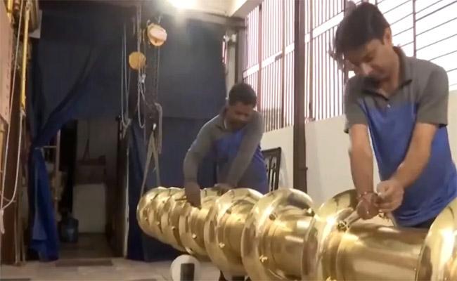 #WATCH | Gujarat: Construction of 7 flag poles for the Ram temple in Ayodhya is underway in Ahmedabad. (04.12) pic.twitter.com/GkPCQudVoq