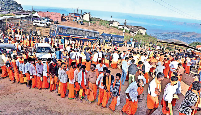 దత్తమాల ధరించి వచ్చిన భక్తులతో చిక్కమగళూరు జిల్లా మలెనాడు చంద్రద్రోణ పర్వత పరిధిలోని ‘కాఫీనాడు’ కాషాయమయమైంది. చిక్కమగళూరులో విశ్వ హిందూ పరిషత్తు, బజరంగదళ మంగళవారం నిర్వహించిన శోభాయాత్రలో పాతిక వేలకుపైగా భక్తులు పాల్గొన్నారు. కామధేను గణపతి దేవాలయంలో దత్తాత్రేయునికి పూజ చేసి బసవనహళ్లి, హనుమంతప్ప కూడలి, ఎంజీ రోడ్డు మార్గాలలో కొనసాగిన యాత్ర ఆజాద్ కూడలిలో ముగిసింది. వీరభద్రుని వేషధారణతో వీరగాసె కళాకారులు కత్తి పట్టుకుని నృత్యాలు చేస్తూ ముందుకు కొనసాగారు. భజనలు చేస్తూ భక్తులు ముందడుగు వేశారు. పునీత్ రాజ్కుమార్ చిత్రాలతో కొందరు కార్యకర్తలు బ్యానర్లు ఏర్పాటు చేశారు. అవాంఛనీయ ఘటనలకు తావివ్వకుండా పోలీసులు గట్టి బందోబస్తు కల్పించారు. డ్రోన్ కెమెరాలతో నిఘా పెట్టారు. మూడు వేల మంది పోలీసులను భద్రతకు వినియోగించారు. నాగేనహళ్లిలో దర్గా వద్ద దత్తజయంతిని ఆచరించేందుకు ప్రయత్నించిన శ్రీరామసేన నాయకుడు రంజిత్ శెట్టిని పోలీసులు అరెస్టు చేశారు. దర్గా చుట్టుపక్కల 144 సెక్షన్ను జారీలోకి తీసుకువచ్చారు. బాబాబుడాన్ గిరి గుహల్లోని దత్తాత్రేయ పాదుకలు దర్శించుకోవడానికి భక్తితో వేల మంది ముందుకు కదిలారు.