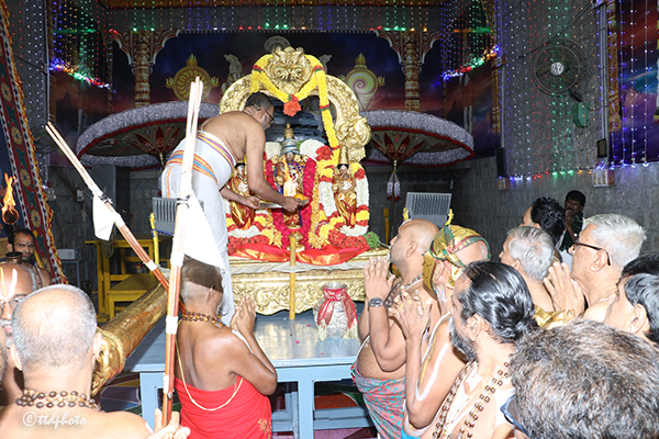 అనంతరం ఆలయ అర్చకులు స్వామివారి మూలవిరాట్టు పాదాలపై అమరి ఉన్న బంగారు తొడుగునకు పవిత్ర ఆకాశగంగ జలంతో అభిషేకం చేశారు. ఈ సందర్భంగా తిరుమలనంబి రచించిన “తిరుమొళి పాశురాలను” పారాయణం చేశారు.