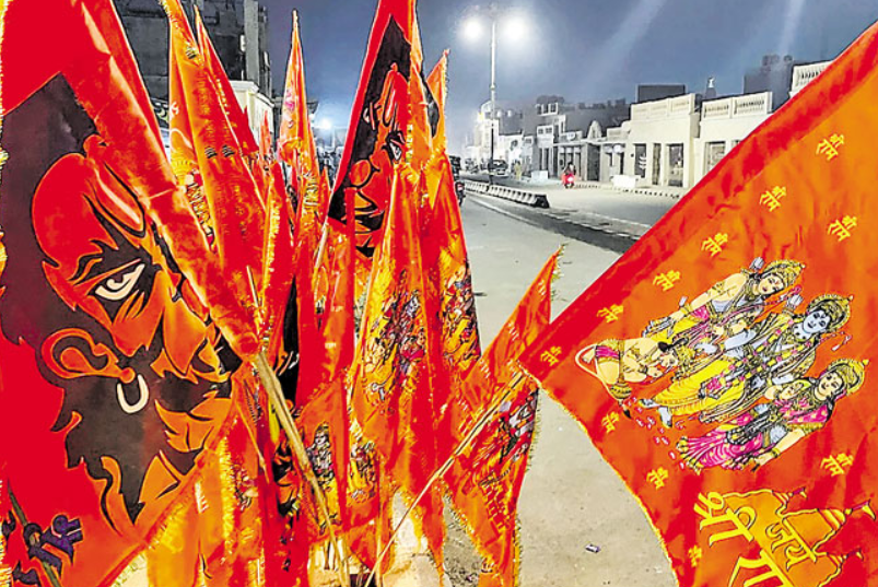 రామమందిర ప్రాణప్రతిష్ఠ వేడుక సమీపిస్తున్న నేపథ్యంలో అయోధ్యలో శ్రీరాముడు, హనుమంతుడి చిత్రాలు, ‘జై శ్రీరాం’ నినాదాలు ఉన్న కాషాయ జెండాలకు డిమాండు బాగా పెరిగింది. జనవరి 22న ప్రధాని మోదీ సహా పలువురు ప్రముఖుల సమక్షంలో కట్టుదిట్టమైన భద్రత నడుమ ఆలయ ప్రారంభోత్సవం జరగనున్నందున ఇరుగు పొరుగు జిల్లాల భక్తులు నిర్మాణంలో ఉన్న ఆలయ సందర్శనకు ముందే తరలివస్తున్నారు. 2019లో అయోధ్య ఆలయ నిర్మాణానికి అనుకూలంగా సుప్రీంకోర్టు తీర్పు వచ్చిన నాటి నుంచే ఈ జెండాల విక్రయం జోరుగా సాగుతున్నట్లు స్థానిక వ్యాపారులు తెలిపారు. గత కొన్నిరోజులుగా ఈ డిమాండు మరికొన్ని రెట్లు పెరిగినట్లు రామ్పథ్లో రెస్టారెంటు నిర్వహిస్తున్న ప్రదీప్ గుప్తా చెప్పారు. గతంలో ఈ జెండాలను ఇళ్ల మీద ఎగురవేసేవారు కాదని, ఇపుడు ఎటుచూసినా ఆ దృశ్యాలేనని అన్నారు.
