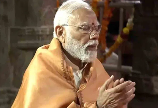 #WATCH | Prime Minister Narendra Modi sings 'Shri Ram Jai Ram' bhajan at the Veerbhadra Temple in Lepakshi, Andhra Pradesh pic.twitter.com/6F0lyyQSXN