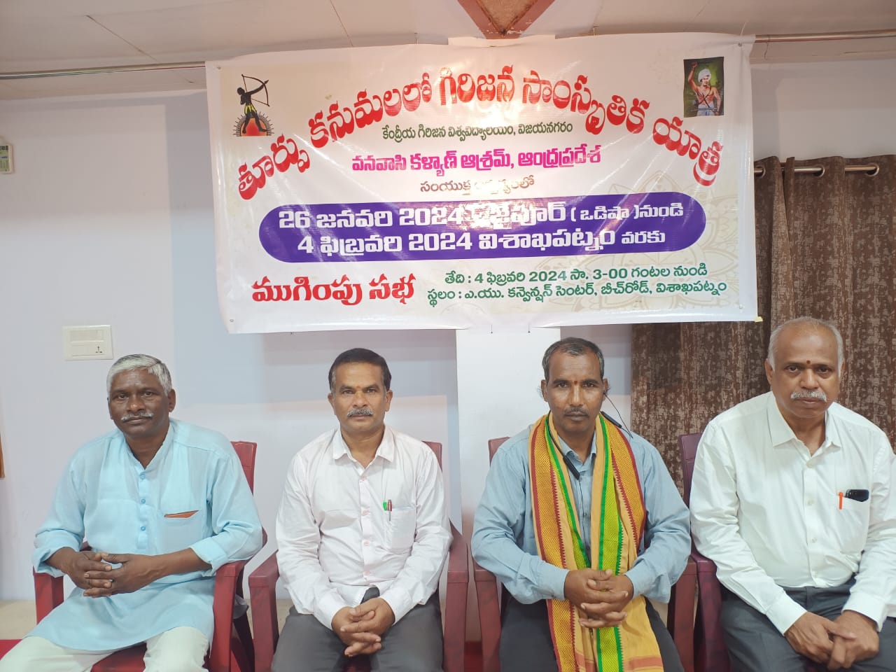 తూర్పు కనుమలలోని గిరిజనుల సంస్కృతి , సంప్రదాయాలు, వారసత్వ సంపదను ప్రపంచానికి తెలియజేసేందుకు జనవరి 25 వ తేదీ నుంచి ఫిబ్రవరి 4వ తేదీ వరకు గిరిజన సాంస్కృతిక యాత్రను నిర్వహిస్తున్నట్టు వనవాసి కళ్యాణ ఆశ్రమం యాత్ర ప్రముఖ్ ఉబ్బేటి నాగేశ్వరావు చెప్పారు. విజయనగరం కేంద్రీయ గిరిజన విశ్వవిద్యాలయంతో కలిసి ఆంధ్రప్రదేశ్ వనవాసీ కళ్యాణ ఆశ్రమం ఈ కార్యక్రమాన్ని నిర్వహిస్తుందని శుక్రవారం విశాఖలో ఏర్పాటు చేసిన విలేకరుల సమావేశంలో ఆయన స్పష్టం చేశారు. యాత్ర సహ ప్రముఖ్ వలురౌతు మోహన్ రావు, వనవాసీ కళ్యాణ్ ఆశ్రమం ఆంధ్రప్రదేశ్ సంఘటన కార్యదర్శి విద్యాధర మహంతో, వనవాసి నగర ప్రముఖ్ అద్దేపల్లి ఈశ్వర్లతో కలిసి విలేకరులతో మాట్లాడారు.