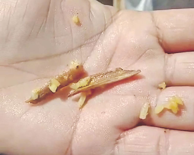 శ్రీశైలం దేవస్థానం పులి హోర ప్రసాదంలో మాంసానికి చెందిన ఎముక ముక్కలు వచ్చాయని భక్తుడు పేర్కొనడం శుక్రవారం కలకలం రేపింది. హైదరాబాద్ కూకట్ పల్లి హౌసింగ్ బోర్డు కాలనీకి చెందిన కె.వేణుగోపాల్ కుటుంబ సభ్యులు, స్నేహితులతో కలిసి శ్రీభ్రమరాంబ మల్లికార్జునస్వామి, అమ్మవార్లను దర్శించుకున్నారు. దర్శనం ముగిసిన తర్వాత అమ్మవారి ఆలయం వెనుక నిత్యప్రసాద వితరణలో భాగంగా పులిహోరను సిబ్బంది అందజేశారు. ప్రసాదం తింటున్నప్పుడు నోటికి గట్టిగా తగిలిందని, కొరి కితే అది రెండు ముక్కలైందని, ఇదేమిటని చేతిలో వేసి చూడగా.. అది మాంసం ఎముకగా గుర్తించామని భక్తుడు వేణుగోపాల్ తెలిపారు. దీనిపై ఆలయ ఏఈవో హరిదాస్కు లిఖితపూర్వకంగా ఫిర్యాదు చేశారు.