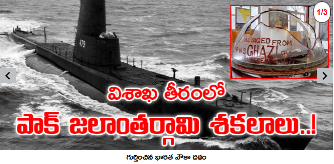 విశాఖ తీరంలో పాకిస్థాన్ జలాంతర్గామి శకలాలను తాజాగా భారత నౌకాదళం అత్యాధునిక సాంకేతికతను ఉపయోగించి గుర్తించింది. 1971 ఇండో-పాక్ వార్ సమయంలో బంగాళాఖాతంలోకి దొంగచాటుగా ప్రవేశించిన పీఎన్ఎస్ గాజీ (PNS Ghazi)కి చెందినవిగా వీటిని తేల్చింది. ఈ విషయాన్ని మన నౌకాదళంలోని సబ్మెరైన్ రెస్క్యూ విభాగానికి చెందిన సీనియర్ అధికారి ధ్రువీకరించారు. భారత అమ్ములపొదిలోకి సరికొత్తగా చేరిన ‘ది డీప్ సబ్మెర్జెన్స్ రెస్క్యూ వెహికల్ (డీఎస్ఆర్వీ) సాయంతో వీటిని కనుగొన్నారు. ‘‘మేం డీఎస్ఆర్వీ సాయంతో గాజీ శకలాలను గుర్తించాం. విశాఖ తీరానికి కేవలం కొన్ని నాటికల్ మైళ్ల దూరంలోనే సముద్ర గర్భాన ఇవి పడి ఉన్నాయి. యుద్ధంలో చనిపోయిన వారిని గౌరవించడం మన నౌకాదళ ఆచారం. అందుకనే ఆ శకలాలను తాకలేదు’’ అని పేర్కొన్నారు. తీరానికి 2-2.5 కిలోమీటర్ల దూరంలోని సముద్ర జలాల్లో 100 మీటర్ల లోతున ఇవి ఉన్నట్లు తెలుస్తోంది.