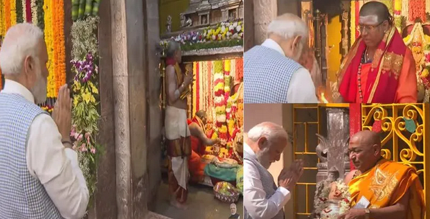 తెలంగాణ పర్యటనలో భాగంగా ప్రధాన మంత్రి నరేంద్ర మోదీ మంగళవారం ఉదయం సికింద్రాబాద్ ఉజ్జయిని మహాంకాళీ అమ్మవారిని దర్శించుకున్నారు. రాజ్భవన్ నుంచి ఉజ్జయిని మహాంకాళీ అమ్మవారి దేవాలయానికి చేరుకున్న మోదీకి అర్చకులు స్వాగతం పలికారు. అనంతరం అమ్మవారికి ప్రధాని ప్రత్యేక పూజలు నిర్వహించారు. మోదీ పర్యటన నేపథ్యంలో సికింద్రాబాద్ పరిసర ప్రాంతాల్లో కట్టుదిట్టమైన భద్రతను ఏర్పాటు చేశారు. అమ్మవారి దర్శనం అనంతరం అక్కడి నుంచి బేగంపేట విమానాశ్రయానికి ప్రధాని బయలుదేరి వెళ్లారు. బేగంపేట్ నుంచి హెలికాఫ్టర్లో సంగారెడ్డికి వెళ్లనున్నారు. సంగారెడ్డిలో పలు అభివృద్ధి కార్యక్రమాలకు ప్రారంభోత్సవాలు చేయనున్నారు. అనంతరం పటాన్చెరులో ఏర్పాటు చేసిన బహిరంగ సభలో ప్రధాని ప్రసంగించనున్నారు. ఆపై తెలంగాణ పర్యటనను ముగించుకుని ప్రధాన మంత్రి నరేంద్ర మోదీ ఒరిస్సాకు బయలుదేరి వెళ్లనున్నారు.
