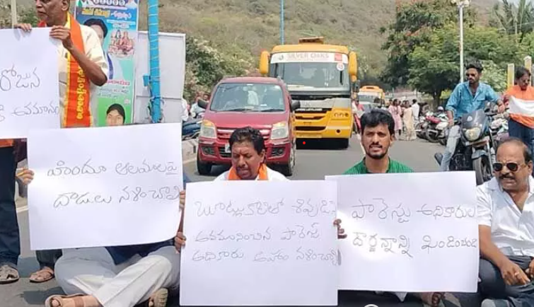 ఇది దారుణమని, తక్షణమే ఆ అధికారి ని సస్పెండ్ చేయాలని హిందూ సంస్థలు డిమాండ్ చేశాయి. శుక్రవారం నాగ క్షేత్రం లో శివరాత్రి వేడుకల్లో పాల్గొన్న అనంతరం హిందూ ధార్మిక సంఘాలు, భక్తులతో కలిసి ఆయన బీచ్ రోడ్ లో రాస్తారోకో చేపట్టారు. సందర్భంగా మాట్లాడుతూ గత 40 ఏళ్లుగా ఇదే ప్రాంగణంలో ఎటువంటి అవాంతరం లేకుండా నిర్వహిస్తున్న ఈ వేడుకలు ఈ ఏడాది ఫారెస్ట్ అధికారులకు మింగుడు పడలేదని అన్నారు. రాత్రికి రాత్రి సంఘ విద్రోహ శక్తులతో ప్రవర్తించే అహంకార వైఖరిని ఒక సాధారణ ఆశ్రమం పై చూపించిన వ్యక్తి సంఘం లో ఉండకూడదన్నారు.
