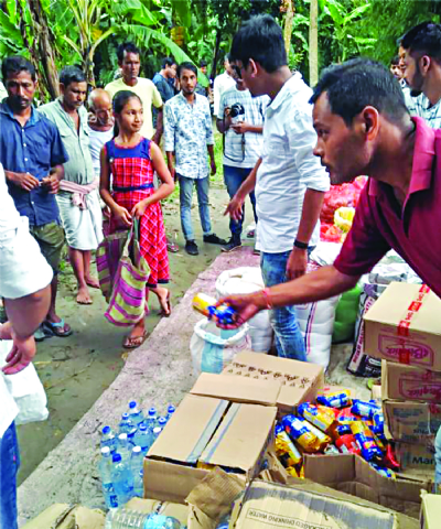 As per their tradition, the Sewa Bharati Purbanchal and RSS workers swung into relief activities immediately after the floods. They are actively helping the people in the flood-affected areas. They have organised various relief camps in several districts with the support of the local people and organisations. Their relief activities include free medical camp, free goods distribution camp (like kitchen materials, etc.), cleanness and hygiene products distribution. They have also extended helping hand to the flood-affected people and their families in the rescue operation.
