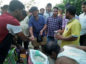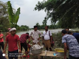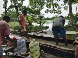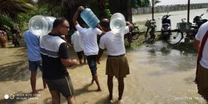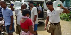Free Goods distribution camps were organised in various flood-affected places. The goods included 50,000 litres of drinking water and 10,000 cartons of biscuit. Along with this material, some other goods and materials like rice, pulses, clothes, mosquito coils, etc. have also been distributed. Besides the relief camps, several volunteers of the Sewa Bharati Purbanchal have rescued the affected families.