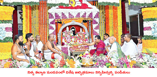 పుష్కరిణిలో చండీశ్వరునికి పూజలు చేసి అవబృద, త్రిశూల స్నానాలు నిర్వహించారు. వసంతోత్సవం కనులపండువగా జరిపారు. సాయంత్రం 8 గంటలకు కల్యాణ మండపంలో ఆది దంపతులైన స్వామి,అమ్మవార్లకు సదస్యం, నాగవల్లి, ఆస్థానసేవ చేశారు. రాత్రి 7.30కు ధ్వజావరోహణ చేశారు. సోమవారం రాత్రి 7 గంటలకు ఉత్సవమూర్తులకు అశ్వవాహనసేవ, రాత్రి 8 గంటల నుంచి శయనోత్సవం, ఏకాంతసేవలు నిర్వహించనున్నారు. ఏకాంతసేవతో బ్రహ్మోత్సవాలకు ముగింపు పలకనున్నారు.