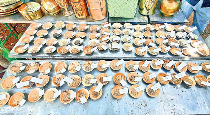శబలా భోజన పండుగలో ఏర్పాటు చేసిన పలు శిబిరాలు ప్రకృతి ప్రేమికులను ఆకట్టుకున్నాయి. సుమారు 96 రకాల వరి వంగడాలను ప్రదర్శనలో ఉంచారు. సంప్రదాయ ఇత్తడి పాత్రల ప్రదర్శన అలనాటి రోజులను గుర్తు చేశాయి. ప్రస్తుత సమాజం మరిచిపోతున్న వివిధ రకాల కూరగాయలు, ఆకుకూరల విత్తనాలు, సుగంధ ద్రవ్యాల విత్తనాలను కూడా ఈ ప్రదర్శనలో ఉంచారు.