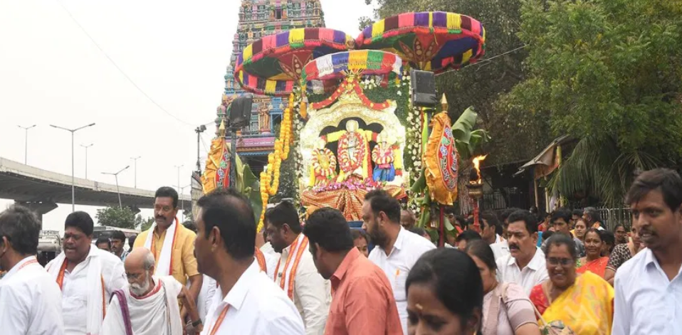 ఫాల్గుణ పౌర్ణమి సందర్భంగా విజయవాడలో ఇంద్రకీలాద్రి గిరిపద్రక్షణ సోమవారం ఉదయం 5.55 గంటలకు ఘాట్రోడ్డు టోల్గేట్ వద్ద నుంచి ప్రారంభమైంది. గంగా, పార్వతీ సమేత మల్లేశ్వరస్వామి ఉత్సవమూర్తులను అలంకరించిన వాహనంపై ఉంచి లఘుపూజలు చేసి బలిహరణలిచ్చిన అనంతరం హారతి సమర్పించారు. భక్తుల కోలాహలం మధ్య మంగళవాయిద్యాల నడుమ గిరిప్రదక్షణ… సుమారు 7 కిలోమీటర్లు సాగింది.