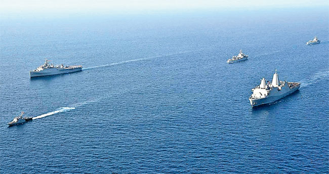 కాకినాడ జిల్లాలోని సూర్యారావుపేట సముద్రంలో ఇండో-అమెరికన్ సంయుక్త నావికా దళాల రహస్య సైనిక విన్యాసాలు కొనసాగుతున్నాయి. మూడోరోజు గురువారం ఇరు దేశాలకు చెందిన యుద్ధవిమానాలు, హెలీకాఫ్టర్లు సముద్రతీరంలో చక్కర్లు కొడుతూ విన్యాసాలు నిర్వహించాయి. లంగరువేసిన యుద్ధ నౌకల ద్వారా మెకనైజ్డ్ లాంగ్ క్రాఫ్ట్లు, స్పీడ్, జెమినీ బోట్లలో సైనికులు తీరానికి చేరుకుని విన్యాసాలు సాగించారు. కాకినాడ తీరంలో ఈనెల 26 నుంచి నిర్వహిస్తున్న ఈ విన్యాసాలు 31వ తేదీ వరకు కొనసాగుతాయి.
