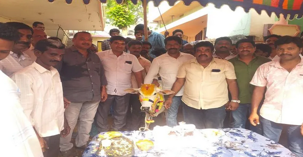 చిన్నపిల్లల పుట్టిన రోజు వేడుకలు ఎంత ఘనంగా నిర్వహిస్తామో అంతకు ధీటుగానే ఓ గోవుకు మొదటి పుట్టిన రోజు వేడుకలు ఘనంగా నిర్వహించారు. అయినవాళ్లను పిలిచి విందు భోజనాలు పెట్టారు.