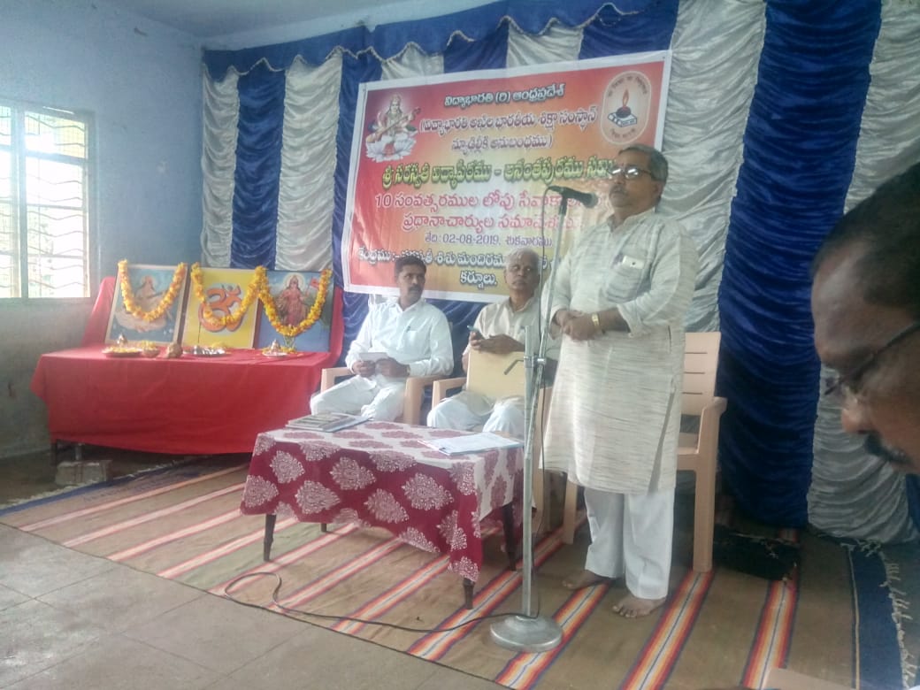 విద్యా భారతి ఆంధ్ర ప్రదేశ్ ఆధ్వర్యంలో 2 .8. 2019 శుక్రవారం శ్రీ సరస్వతీ విద్యా పీఠం అనంతపురం సమితి (రీజియన్) లోని శ్రీ సరస్వతి శిశు మందిర్ స్కూల్ , కర్నూల్ లో శ్రీ సరస్వతి శిశుమందిర్ ల ప్రధానాచార్యులకు ఒకరోజు వర్గ జరిగింది. పది సంవత్సరములలోపు సేవాకాలం (సర్వీస్)(అనుభవం) కలిగిన ప్రధానాచార్యులు ఈ వర్గలో పాల్గొన్నారు. ఈ సమావేశంలో ఆంధ్ర,తెలంగాణ, కర్ణాటక రాష్ట్రాల సంఘటన కార్యదర్శిశ్రీ లింగం సుధాకర్ రెడ్డి, ప్రాంత సంఘటన కార్యదర్శి శ్రీ కర్నాటి హనుమంతరావు, అనంతపురం సమితి సహ కార్యదర్శి శ్రీ విజయానంద్, అనంతపురం సమితి ఈవో శ్రీ వి.సి నరసింహులు మరియు శైక్షణిక ప్రముఖులు పాల్గొన్నారు. ఈ వర్గలో శ్రీ సరస్వతి శిశుమందిర్ ప్రధానాచార్యుల బాధ్యతలను మరియు విధులను గురించి అవగాహన కలిగించారు.