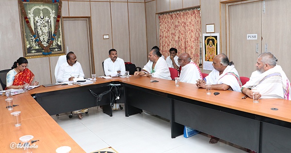 శ్రీవారి ఆలయానికి సంబంధించిన పలు ఆచార వ్యవహారాలు, వైఖానస ఆగమోపచారాలు, పలు అంశాలపై ఆలయ అర్చకులు, ఆగమ పండితులతో టీటీడీ ఈవో జె.శ్యామలరావు సమీక్షించారు.