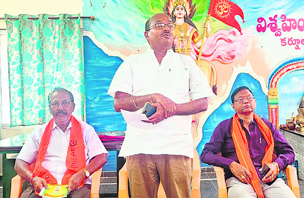 విశ్వ హిందూ పరిషత్ షష్ట్యబ్ది ఉత్సవాలు ఆగస్టు 16 నుంచి 31వ తేదీ వరకు నిర్వహించాలని వీహెచ్పీ కర్నూలు జిల్లా అధ్యక్షులు గోరంట్ల రమణ పేర్కొన్నారు.కర్నూలు నగరంలోని రెవెన్యూ కాలనీలోని భరత మాత మందిర ప్రాంగణంలో జిల్లా సమావేశం జరిగింది. ఈ సందర్భంగా ఆయన మాట్లాడుతూ షష్టిపూర్తి సందర్భంగా ప్రతి ప్రఖండలో హిందూ ఆత్మీయ సమ్మేళనాలు నిర్వహించాలన్నారు. రాజకీయాలతో సంబంధం లేని ప్రముఖులను ప్రఖండ సమావేశాలకు ఆహ్వానించాలన్నారు. జిల్లా పరిధిలోని 12 ప్రఖండలలో ఘనంగా వేడుకలు నిర్వహించాలన్నారు. వీహెచ్పీ జిల్లా కార్యదర్శి భాను ప్రకాష్, నగర అధ్యక్షులు టీసీ మద్దిలేటి, రాష్ట్ర కోశాధికారి సందడి మహేష్, విభాగ్ ధర్మ ప్రసార్ విజయుడు, జిల్లా సహ కార్యదర్శులు గిరిబాబు, నాగరాజు, తదితరులు పాల్గొన్నారు.