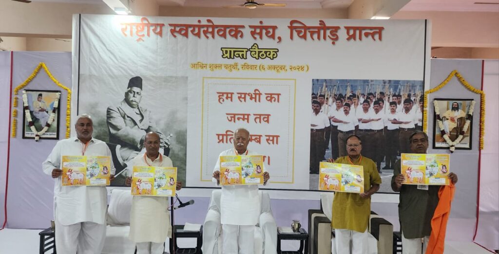 రాష్ట్రీయ స్వయంసేవక్ సంఘ్ (ఆర్ఎస్ఎస్) సర్ సంఘచాలక్ డాక్టర్ మోహన్ భగవత్ ఆవు సైన్స్ రీసెర్చ్ అండ్ జనరల్ నాలెడ్జ్ ఎగ్జామినేషన్ పోస్టర్ను ఆదివారం విడుదల చేశారు. ఈ పరీక్షను నవంబర్ 13 నిర్వహిస్తారు. ప్రాంత గోసేవా కార్యకలాపం ప్రముఖ్ రాజేంద్ర పమేచా మాట్లాడుతూ గోమాత పట్ల విద్యార్థులలో సేవా భావాన్ని, ఆసక్తిని పెంపొందించడమే పరీక్ష ఉద్దేశమని తెలిపారు. ఔషధం, ఆధునిక వైద్య శాస్త్రంలో గోమాత పంచగవ్యకు చాలా ముఖ్యమైన స్థానం ఉందని చెప్పారు.