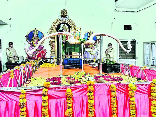డాక్టర్ బి.ఆర్. అంబేద్కర్ కోనసీమ జిల్లా అమలాపురం స్థానిక వాసవీ కన్యకా పరమేశ్వరీదేవి ఆలయంలో శరన్నవరాత్ర మహోత్సవాలు వైభవంగా జరుగుతున్నాయి. వాసవీ మాతను రూ.3.33 కోట్ల కరెన్సీ నోట్లతో అలంకరించడంతో అధిక సంఖ్యలో భక్తులు తరలివచ్చి తిలకించారు. అక్కడే అయోధ్యలో బహూకరించనున్న బంగారం, వెండితో తయారు చేసిన కోదండ రాముడి ధనస్సును మంగళవారం ప్రదర్శించారు. జిల్లా జాయింట్ కలెక్టర్ టి.నిషాంతి తదితర అధికారులు అమ్మవారిని దర్శించుకున్నారు. పట్టణ ఆర్య వైశ్య సంఘ అధ్యక్షుడు నంబూరి సత్యనారాయణమూర్తి, ఉత్సవ కమిటీ చైర్మన్ అప్పన వీరన్న, సంఘ ప్రతినిధులు వరదా సూరిబాబు, డాక్టర్ ఎస్ఆర్ఎస్ కొల్లూరి, వంకాయల కాశీ, యెండూరి సీతా మహాలక్ష్మి తదితరులు భక్తులకు సేవలు అందించారు.