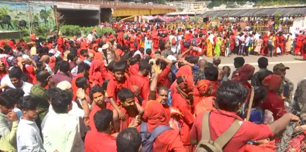 విజయవాడ నగరంలోని ప్రధాన రహదారుల్లో ఎక్కడ చూసినా భవానీమాలదారులే కనిపిస్తున్నారు. తుమ్మలపల్లి కళాక్షేత్రం నుంచి కాళేశ్వరరావుమార్కెట్ పైవంతెన మీదుగా కెనాల్ బ్రిడ్జి మార్గంలో భవానీల సంఖ్య అధికంగా ఉండడంతో వాహనాల రాకపోకలను నియంత్రించారు. వీఎంసీ సమీపంలోని హోల్డింగ్ ఏరియాలోకి భవానీభక్తులను క్రమపద్ధతిలో పంపిస్తున్నారు. అక్కడి నుంచి రద్దీని పరిగణనలోకి తీసుకుని వినాయకుగుడిని ఆనుకుని ఉన్న మార్గంలోకి వెళ్లేలా చూస్తున్నారు. పున్నమిఘాట్, కుమ్మరిపాలెం, సితార కూడలి వైపు నుంచి భారీగా భవానీలు తరలివస్తుండడంతో వారిని కూడా ఓ క్రమపద్ధతిలోనే ఘాట్రోడ్డు క్యూలైన్లోకి పంపిస్తున్నారు. సెంట్రల్ కమాండ్ కంట్రోల్ రూమ్ నుంచి పోలీసులు నిశిత పరిశీలన, పర్యవేక్షణ చేస్తూ ఎక్కువ సేపు దీక్షాదారులు రోడ్లపై పడిగాపులు పడకుండా త్వరగా క్యూలైన్లోకి చేరేలా అప్పటికప్పుడు వ్యూహాలు రూపొందించి అమలు చేస్తున్నారు.