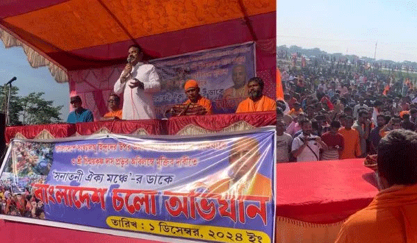 కరీంగంజ్ కళాశాల ప్రాంగణం నుంచి 2,000 మందితో బైక్ ర్యాలీ జరిగింది. సుతార్ కండీ సరిహద్దు వరకూ ఇది సాగింది. ఆ తర్వాత సంఘీభావ సభకి 60 వేల మంది హిందువులు హాజరయ్యారు.బంగ్లాదేశ్ హిందువులకు, ఇస్కాన్ స్వామీజీలకు తమ సంఘీభావాన్ని ప్రకటించారు.ఈ సభలో సనాతనీ ఓక్యోమంచ్ కోఆర్డినేటర్ శంతను నాయక్, సిల్చార్ శంకర మఠం అషిత్ చక్రవర్తి, బిగానంద మహారాజ్; బైకానంత మహారాజ్ తదితరులు హాజరయ్యారు. బంగ్లాదేశ్ లో హిందువులపై జరుగుతున్న దాడులను వెంటనే ఆపాలని, వారికి రక్షణ కల్పించాలని డిమాండ్ చేశారు. అలాగే ఇస్కాన్ స్వామీజీని విడుదల చేయాలని డిమాండ్ చేశారు. బంగ్లాదేశ్ లో మానవ హక్కుల ఉల్లంఘన తీవ్ర స్థాయిలో వుందన్నారు.