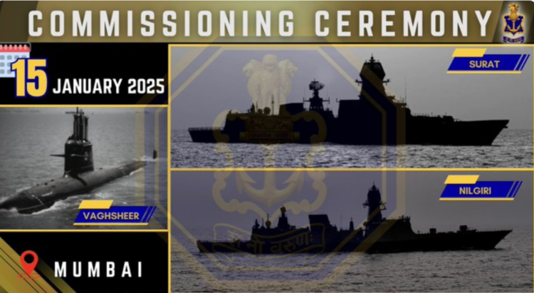 భారత నౌకాదళం మరింత బలోపేతం కానుంది. నీలగిరి, సూరత్, వాఘ్షీర్ అనే దేశీయంగా నిర్మించిన మూడు యుద్ధనౌకలు ఇండియన్ నేవీకి అందుబాటులోకి రానున్నాయి. వాటిని ఈ నెల 15న ముంబైలోని నేవల్ డాక్యార్డ్లో భారత నౌకాదళంలోకి ప్రవేశపెడతారు.