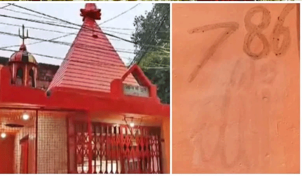 దుర్గా దేవాలయంపై 786, అల్లాహ్ అంటూ రాతలు… హిందువుల ధర్నా