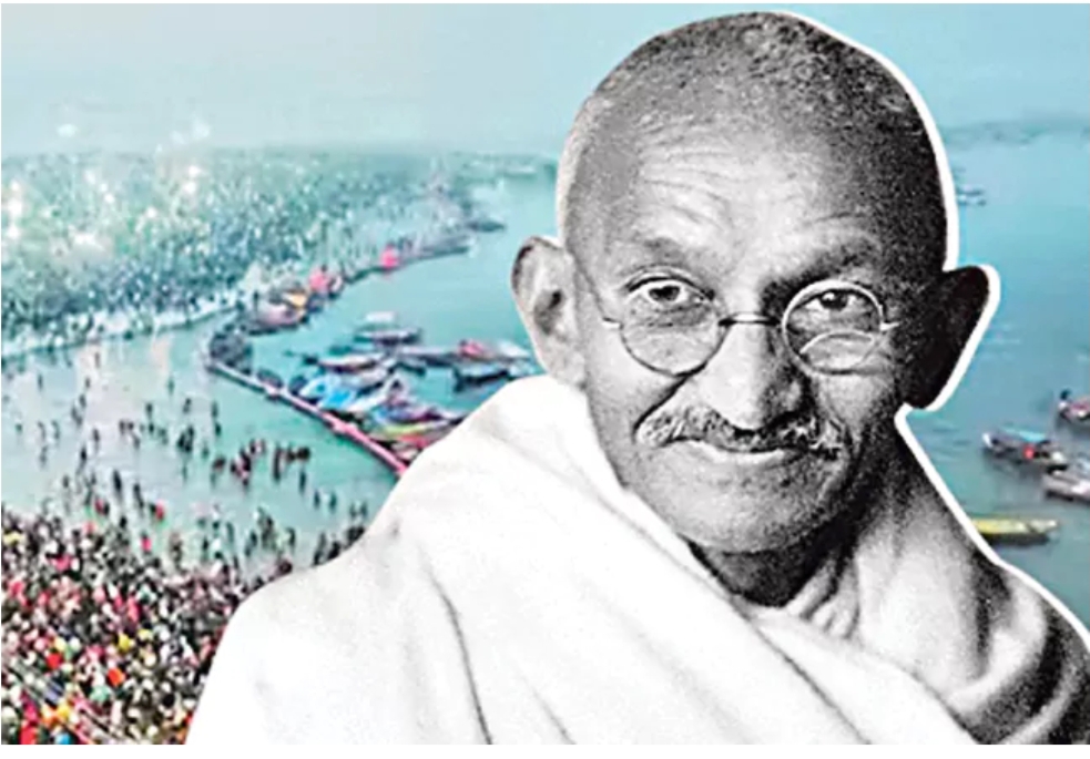 దక్షిణాఫ్రికా నుంచి భారత్‌కు తిరిగివచ్చి అపుడపుడే స్వాతంత్య్ర సంగ్రామంలోకి అడుగుపెడుతున్న మహాత్మాగాంధీ 1918 నాటి కుంభమేళాను సందర్శించి, ఆధ్యాత్మిక వేడుకలో స్వరాజ్యస్ఫూర్తిని రగిలించారు. ‘మినీ ఇండియా’లా అన్ని ప్రాంతాల వ్యక్తులు గుమికూడే ఈ మేళాను భారతీయుల్లో పోరాటస్ఫూర్తిని నింపేందుకు సరైన వేదికగా మహాత్ముడు భావించారు. గురువారం గాంధీ వర్ధంతి సందర్భంగా అలనాటి విశేషాలు చర్చకు వచ్చాయి. ‘‘బ్రిటిష్‌ పాలకులకు వ్యతిరేకంగా ప్రజాసమూహాన్ని చైతన్యపరిచేందుకు మహాకుంభ్‌ ఓ మాధ్యమంలా ఉపయోగపడుతుందని బాపు భావించారు. నాటి మహాకుంభ్‌ స్వాతంత్య్ర సమరయోధులు, వివిధ వర్గాల నాయకులు, విప్లవకారులు, పాత్రికేయులు, రచయితలకు సమావేశ స్థలిగా మారింది’’ అని అలహాబాద్‌ విశ్వవిద్యాలయ సెంటర్‌ ఆఫ్‌ మీడియా స్టడీస్‌ కోర్స్‌ కోఆర్డినేటరు ధనంజయ్‌ చోప్రా తెలిపారు. రీజనల్‌ స్టేట్‌ ఆర్కైవ్స్‌లో భద్రపరచిన రికార్డుల ప్రకారం నాటి కుంభమేళాకు విచ్చేసిన గాంధీ పర్యటనను బ్రిటిష్‌ అధికారులు ఇంటెలిజెన్స్‌ నివేదికల ద్వారా డాక్యుమెంట్‌ చేసినట్లు చోప్రా వెల్లడించారు. కుంభమేళాలో పరిశుభ్రత లోపంపై అసంతృప్తి వ్యక్తం చేసిన బాపు.. ఇలాంటి కార్యక్రమాలకు ప్రజల్లో క్రమశిక్షణ చాలా అవసరమని అభిప్రాయపడినట్లు ఆయన ముని మనవడు తుషార్‌గాంధీ తెలిపారు. 1948 జనవరి 30న మహాత్ముడు మరణించాక ఆయన చితాభస్మాన్ని ఫిబ్రవరి 12న త్రివేణీసంగమంలోనే నిమజ్జనం చేశారు.