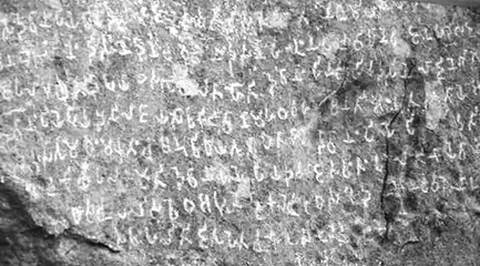 3. గుంటూరులోని పురావస్తు ప్రదర్శనశాలలో అమరావతి స్తంభంపై శాసనం.