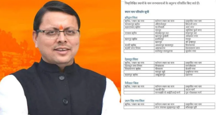 ఉత్తరాఖండ్ ముఖ్యమంత్రి పుష్కర్ సింగ్ ధామీఏయే ప్రాంతాల పేర్లను మారుస్తున్నారు, అక్కడ కొత్తగా ఏం పేర్లు పెడుతున్నారు అన్న వివరాలను అధికారికంగా ప్రకటించారు. ఆ మేరకు అధికారిక పత్రాల్లో పేర్లమార్పిడి ప్రక్రియ ప్రారంభమైంది.
