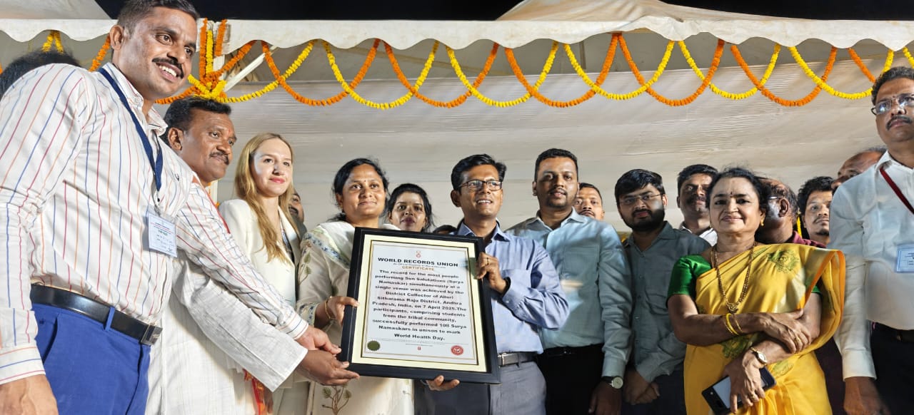 గిరిజన విద్యార్థులు ఓ మహా అద్భుత కార్యక్రమంలో భాగస్వాములయ్యారు. ప్రపంచ ఆరోగ్య దినోత్సవం సందర్భంగా అరకులోయలోని డిగ్రీ కళాశాల మైదానంలో సోమవారం ‘మహా సూర్య వందనం’ కార్యక్రమాన్ని నిర్వహించి ప్రపంచ ఘనత సాధించారు.
