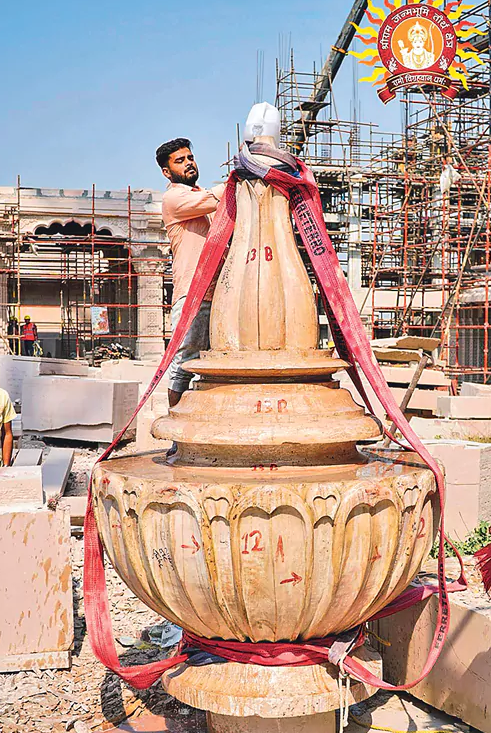రామాలయంలోని గర్భగుడి ప్రధాన శిఖరంపై భారీ కలశాన్ని సోమవారం ప్రతిష్ఠించారు. ‘కలశ పూజా విధి’ నిర్వహించారు. ఆలయ సముదాయంలో నిర్మిస్తున్న 6 దేవాలయాల పైభాగంలో కూడా కలశాలను మరికొద్ది రోజుల్లో ఏర్పాటు చేయనున్నారు. అందుకోసం ఆలయ నిర్మాణ కార్మికులు రాత్రింబవళ్లు పని చేస్తున్నారు.
