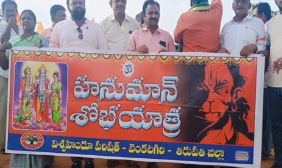 తిరుపతి జిల్లా వెంకటగిరిలో హిందూ పరిషత్ ఆధ్వర్యంలో హనుమాన్ శోభాయాత్ర ఘనంగా నిర్వహించారు.ఈ హనుమాన్ శోభాయాత్ర అశేష జన సందోహం మధ్య ఘనంగా జరిగింది.వెంకటగిరి విశ్వోదయ కళాశాల ప్రాంగణం నుంచి ప్రారంభమైన హనుమాన్ శోభాయాత్ర ఆర్టీసీ బస్టాండ్ కాశీపేట, పోలేరమ్మ ఆర్చ్ పాత బస్టాండ్ మీదుగా శివాలయం వరకు అశేష జన సందోహం మధ్య హనుమాన్ శోభాయాత్ర ఘనంగా నిర్వహించారు.
