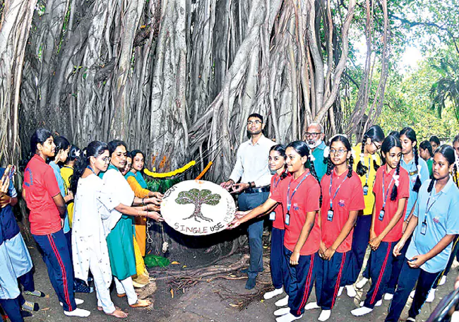 విశాఖలోని రైల్వే గెస్ట్హౌస్ దగ్గరున్న సుమారు 138 ఏళ్ల చరిత్ర కలిగిన మహా మర్రి వృక్షానికి గ్రీన్ క్లైమేట్ బృందం, ఆంధ్రప్రదేశ్ కాలుష్య నియంత్రణ మండలి ఆధ్వర్యంలో సెయింట్ జోసెఫ్ కళాశాల, లిటిల్ ఏంజెల్స్ పాఠశాల విద్యార్థులు రాఖీ కట్టి పూజలు నిర్వహించారు.