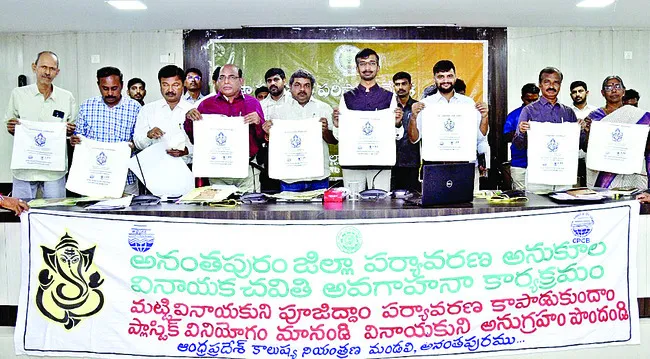 వినాయక చతుర్థి సందర్భంగా మట్టి గణపతిని పూజించి పర్యావరణాన్ని పరిక్షించాలని ప్రజలకు అనంతపురం జిల్లా కలెక్టర్ వి.వినోద్కుమార్ పిలుపునిచ్చారు. అనంతపురం కలెక్టరేట్లోని రెవెన్యూభవన్లో కాలుష్య నియంత్రణ మండలి ఆధ్వర్యంలో ఏర్పాటు చేసిన కార్యక్రమంలో ‘మట్టి ప్రతిమలను పూజించి– పర్యావరణాన్ని పరిరక్షించాలి’ అనే పోస్టర్లను కలెక్టర్ విడుదల చేశారు. ఈ సందర్భంగా ఆయన మాట్లాడుతూ వినాయక చవితి విశిష్టతను కాపాడేందుకు అందరూ సమష్టిగా కృషి చేయాలన్నారు. సహజ రంగులతో చేసిన మట్లి ప్రతిమలతో పర్యావరణ అనుకూల వినాయక చవితిని జరుపుకోవాలన్నారు. సింగిల్ యూజ్ ప్లాస్టిక్ వినియోగించకూడదన్నారు. జల వనరులకు నష్టం కలిగించే వ్యర్థ పదార్థాల వినియోగం తగ్గించడం లేదా పూర్తిగా మానేయాలని సూచించారు. కార్యక్రమంలో జాయింట్ కలెక్టర్ శివ్ నారాయణ్ శర్మ, డీఆర్ఓ ఎ.మలోల, ఎఫ్ఎస్ఓ రామకృష్ణారెడ్డి, ఏపీపీసీబీ పర్యావరణ ఇంజినీరు పీవీ కిషోర్రెడ్డి, ఇతర అధికారులు పాల్గొన్నారు.