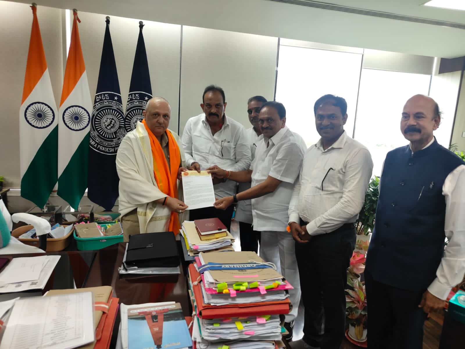 ఆంధ్రప్రదేశ్ గణేష్ ఉత్సవ సమితి పెద్దలు గౌరవాధ్యక్షులు శ్రీ గోకరాజు గంగరాజు గారు అధ్యక్షులు శ్రీ చలసాని ఆంజనేయులు గారు, ఉపాధ్యక్షులు శ్రీ బీవీ రమణ కుమార్ గారు, ప్రధాన కార్యదర్శి శ్రీ పాకాల త్రినాథ్ గారు, కార్యదర్శి దుర్గాప్రసాద్ రాజుగారు బృందంతో కలిసి ఆంధ్రప్రదేశ్ రాష్ట్ర DGP శ్రీ హరీశ్ కుమార్ గుప్త గారిని కలిసి ఈనెల 27 ఆగస్టు నుండి జరిగే గణేష్ ఉత్సవాలకి మండపాలవారు పెట్టుకున్న అర్జీ ఆధారంగా ఎలాంటి రుసుములు తీసుకోకుండా అన్ని రకాల అనుమతులు సింగిల్ విండో ద్వారా ఇవ్వాలని సమితి పెద్దలు కోరారు.