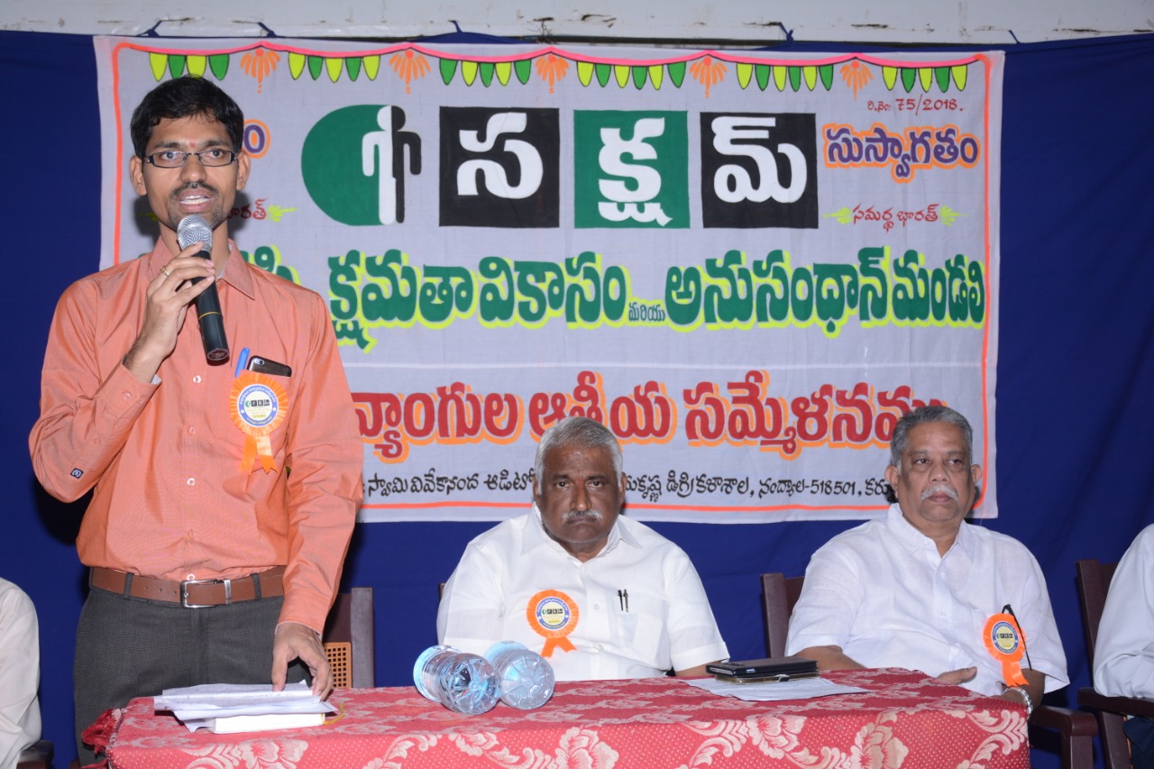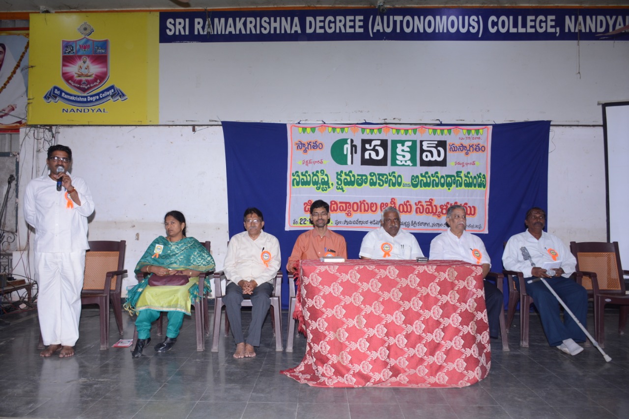 నంద్యాల పట్టణంలో సక్షమ్ ఆధ్వర్యంలో కర్నూలు జిల్లా దివ్యాంగుల సమ్మేళనం జరిగింది. ఈ కార్యక్రమంలో జిల్లా నలుమూలల నుండి 300 మంది దివ్యాంగులు మరియు వారి తల్లిదండ్రులు అలాగే దివ్యాంగుల కోసం పనిచేస్తున్న స్వచ్ఛంద సేవాసంస్థలు NGO’S పాల్గొన్నాయి.
