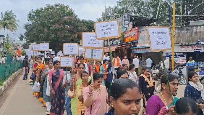 పుణ్యక్షేత్రం ధర్మస్థల పవిత్రతతకు భంగం కలిగించే సాగుతున్న కుట్రను అడ్డుకోవాలని కోరుతూ వివిధ హిందూ సంఘాల ఆధ్వర్యంలో నిరసన చేపట్టారు. ఈ సందర్భంగా సీకల్ రామచంద్రగౌడ మాట్లాడుతూ.. పరిస్థితులు ఇలాగే కొనసాగితే హిందూదేశంలో హిందువులు పరాయివారువలే బతికే రోజులు ఎంతోదూరం లేదని విచారం వ్యక్తం చేశారు. ధర్మస్థల మంజునాథస్వామి ఆలయ పవిత్రతకు భంగం కలిగేలా సాగుతున్న కుట్రను అందరూ అడ్డుకోవాలన్నారు.