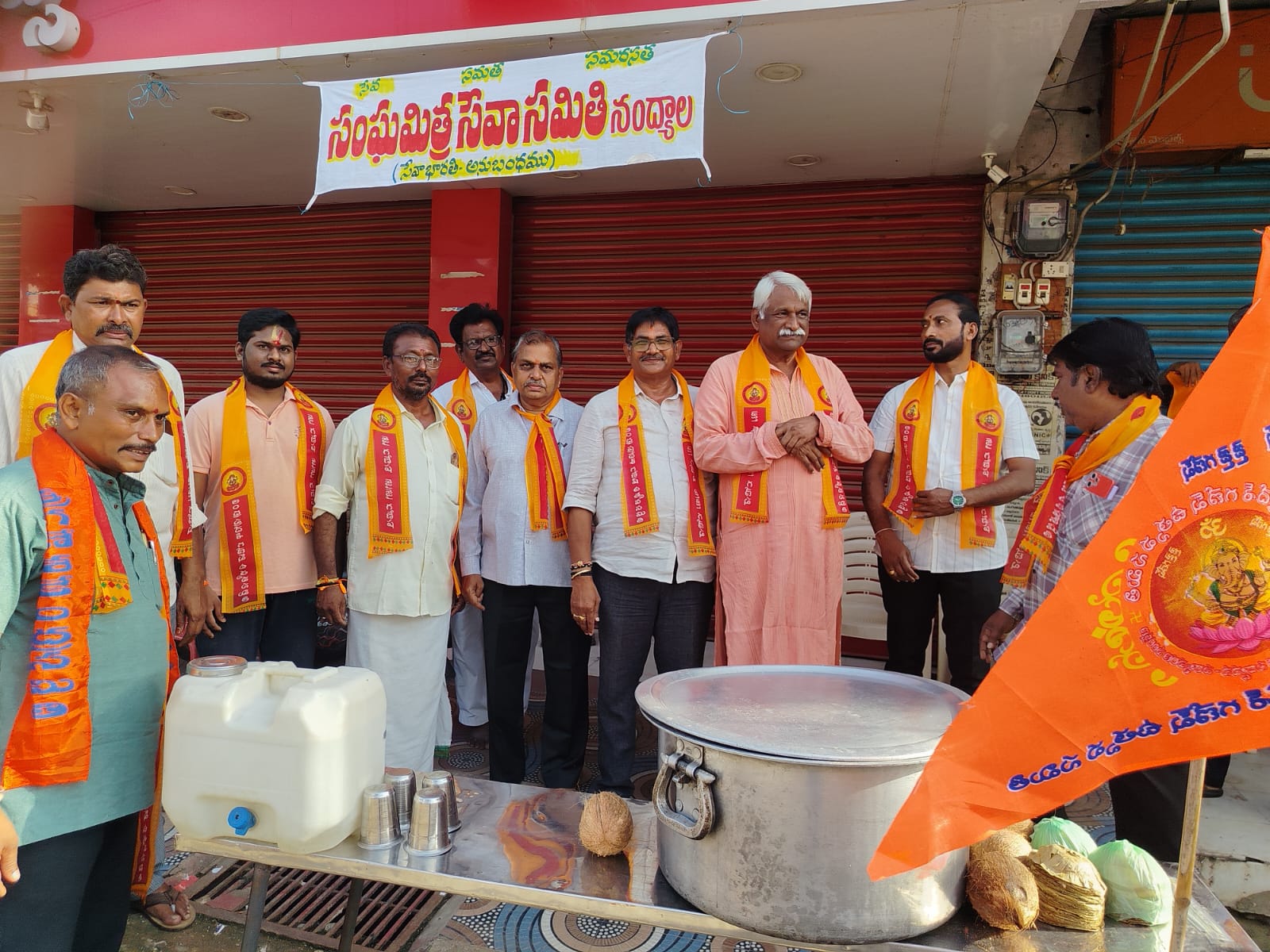 నంద్యాల జిల్లా, సంఘమిత్ర సేవా సమితి, సేవా కార్యక్రమాల్లో నే కాదు, ధార్మిక కార్యక్రమాల్లో కూడా ముందు వరుసలో ఉంటుంది. నవరాత్రులందు పూజలందుకుని అమ్మ ఒడికి చేర పయనమైన గణనాథుని అంగ రంగ వైభవంగా సాగనంపే భక్తులు అలసి పోతే మార్గమధ్యంలో వారికి ప్రసాదము, మంచి నీరు అందించి వారికి పునరుత్తేజం కల్పించడం సంఘమిత్ర సభ్యులకు ఆనవాయితీ.
