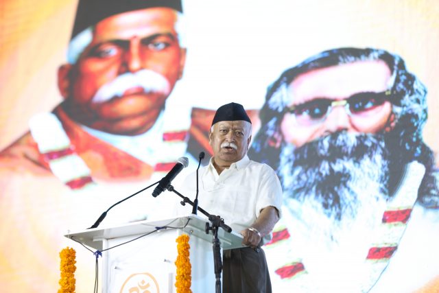 స్వార్ధంతో నీతినియమాలను మరచి తమ మేలు మాత్రమే కోరుకునేది ఆసురీ ప్రవృత్తి అని, వారు సాధించదలచెది అసురి విజయమని ఆయన అన్నారు. దీని వల్ల సర్వత్ర విధ్వంసం మాత్రమే జరుగుతుందని అన్నారు. అలాగే కీర్తిప్రతిష్టాలతో, అధికారం కోసం ప్రయత్నించేది రాజసిక విజయమని, అది పూర్తి స్వార్ధపూరితమైనదని డా. మోహన్ భాగవత్ అన్నారు. వీటన్నిటికంటే ధర్మవిజయమే ఉత్తమమైనది. ఎందుకంటే ఇలాంటి విజయం కోసం కృషి చేసే వ్యక్తులు ఎంతటి వ్యతిరేకత ఉన్నప్పటికి అందరి మేలు కోసమే పనిచేస్తారు. ఎవరో వచ్చి దేశ ప్రగతిని, హితాన్ని సాధిస్తారని ఆశించరాదని, అందరూ కలిసి ఆ కార్యాన్ని సాధించడానికి కృషి చేయవలసిందేనని డా. భాగవత్ అన్నారు. సర్వ సృష్టి ఆ పరమాత్మ నుంచి వచ్చింది కాబట్టి అందరిపట్ల సమాన భావాన్ని కలిగిఉండడమే హిందూ లేదా భారతీయ దృక్పధం. ఈ దేశంలో పరంపరాగతంగా ఇదే కనిపిస్తుందని, ఇక్కడ స్వేచ్చా, స్వాతంత్ర్యం ఉంటాయి కానీ అరాచకత్వం, విశృంఖలత్వం ఉండవని ఆయన అన్నారు. సమాజంలో సాధారణ ప్రజానీకం కొందరు శ్రేష్ట వ్యక్తులను అనుసరిస్తారు. వీరినే రవీంద్రనాధ్ ఠాగూర్ నాయక్ అన్నారని, ఏకత్వ సాధనే మన సమాజ లక్షణమని, సమాజ పరివర్తనతోనే ఉద్ధరణ, ఉన్నతి సాధ్యపడతాయని డా. మోహన్ భాగవత్ అన్నారు. అది కూడా హిందూ మార్గం, దృక్పధం ద్వారానే సాధ్యపడుతుందని ఠాగూర్ అన్నారని వివరించారు. ఈ దేశాన్ని తన మాతృభూమిగా తలచి ఇక్కడి సంస్కృతిని ఆచరించేవాడు, సర్వ సృష్టిని ఒకటిగా భావించేవాడు హిందువని, అలాంటి హిందువులను కలపడమే సంఘ కార్యమని, ఆ కార్య సాధనకు, ధర్మ విజయానికి స్వయంసేవకులు కృషి చేస్తారని డా. మోహన్ భాగవత్ అన్నారు. మొత్తం సమాజాన్ని కలుపుకుని దేశ ఉన్నతి కోసం సంఘ 90 ఏళ్లుగా పనిచేస్తోందని అన్నారు.