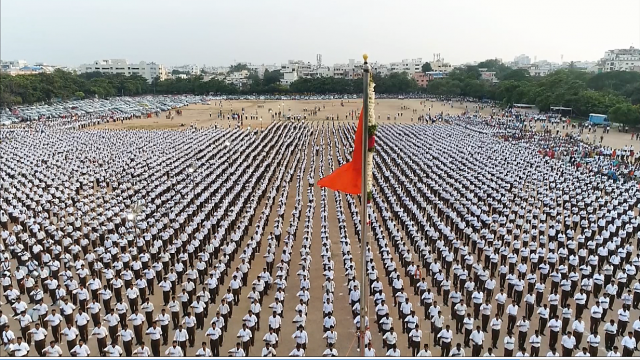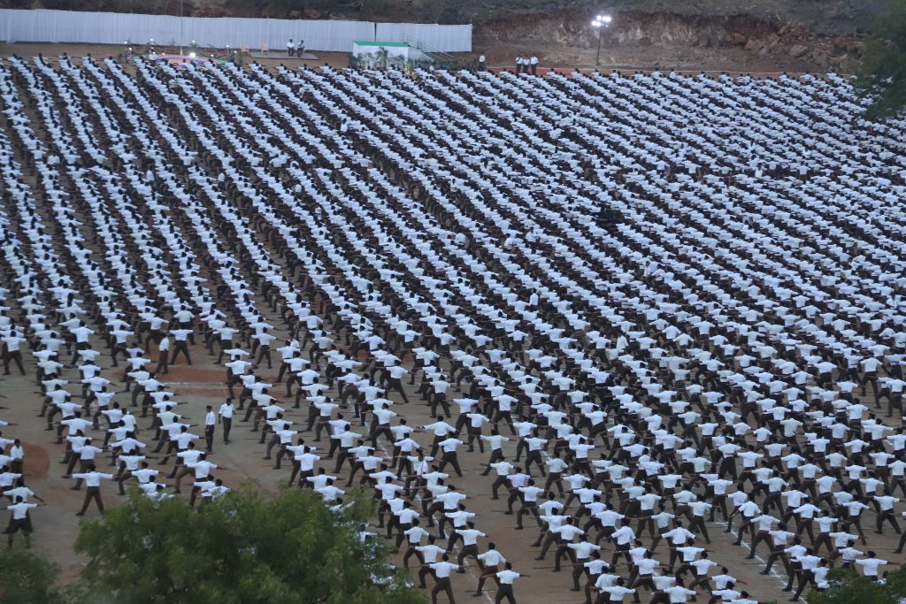 8వేలమంది స్వయంసేవకుల యోగాసన ప్రదర్శన, ఇతర సంస్కృతిక కార్యక్రమాలు అందరినీ ఆకట్టుకున్నాయి. అంతకుముందు పురవిధుల్లో స్వయంసేవకుల పథసంచలన (రూట్ మార్చ్) శోభాయమానంగా సాగింది.