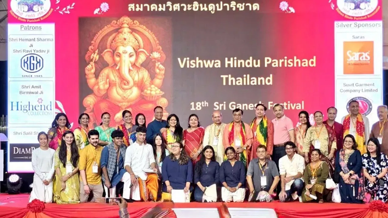 ప్రపంచవ్యాప్తంగా గణేష్ ఉత్సవాలు ఆనందంగా జరుపుకుంటున్నారు. ఈ పండుగ ఉత్సాహం థాయిలాండ్లో కూడా కనిపించింది. థాయిలాండ్లో విశ్వహిందూ పరిషత్ సంఘం 18వ వార్షిక గణేషోత్సవాన్ని ఎంతో ఉత్సాహంగా నిర్వహించింది. ఈ ఉత్సవాన్ని బ్యాంకాక్లోని నిమిబుత్ర స్టేడియంలో నిర్వహించారు. విశ్వహిందూ పరిషత్ సంఘం థాయిలాండ్ నిర్వహించిన ఈ ఉత్సవంలో వేలాది మంది భక్తులు పాల్గొన్నారు.