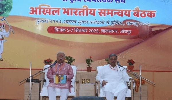 రాష్ట్రీయ స్వయంసేవక్ సంఘ్ ‘‘సమన్వయ బైఠక్’’ జోధ్ పుర్ వేదికగా శుక్రవారం ప్రారంభమైంది. సరసంఘచాలక్ మోహన్ భాగవత్, సర్ కార్యవాహ దత్తాత్రేయ హోసబళే భారత మాత చిత్ర పటానికి పుష్పార్చన చేశారు. అలాగే సంఘటనా మంత్ర పఠనంతో లాంఛనంగా ఈ సమావేశాలు ప్రారంభమయ్యాయి. ఈ నెల 5 నుంచి 7 వ తేదీ వరకు ఈ సమావేశాలు జరుగుతాయి.