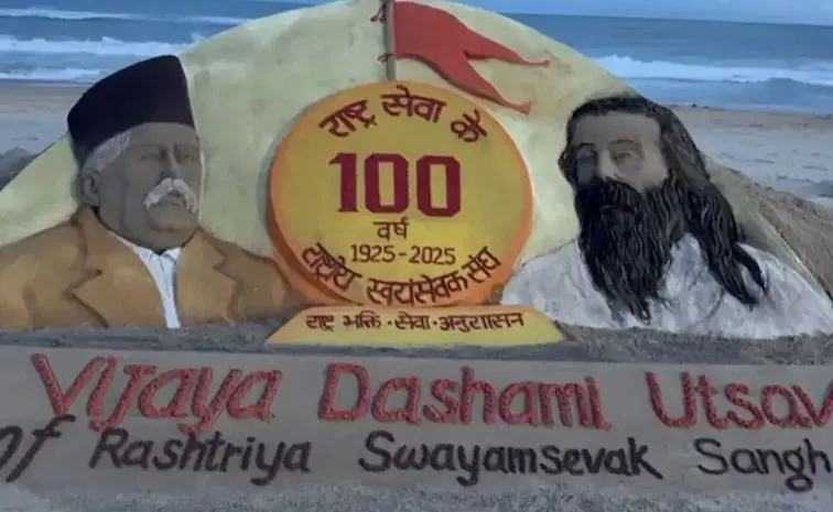 రాష్ట్రీయ స్వయంసేవక్ సంఘ్ (ఆర్ఎస్ఎస్) నేడు (విజయ దశమి) వందవ వ్యవస్థాపక దినోత్సవాన్ని జరుపుకుంటోంది. ఆర్ఎస్ఎస్ 1925లో ప్రారంభమయ్యింది. ఈ చారిత్రాత్మక మైలురాయిని గుర్తుచేస్తూ పద్మశ్రీ అవార్డు గ్రహీత, అంతర్జాతీయంగా పలువురు ప్రశంసలు పొందిన సైకత శిల్ప కళాకారుడు సుదర్శన్ పట్నాయక్ పూరీ బీచ్లో ‘100 ఏళ్ల నిస్వార్థ సేవ’ అనే సందేశంతో అద్భుతమైన సైకత శిల్పాన్ని రూపొందించారు.
