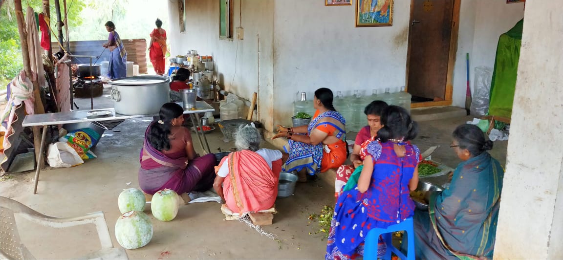 వంటలు చేస్తున్న మహిళా భక్తులు