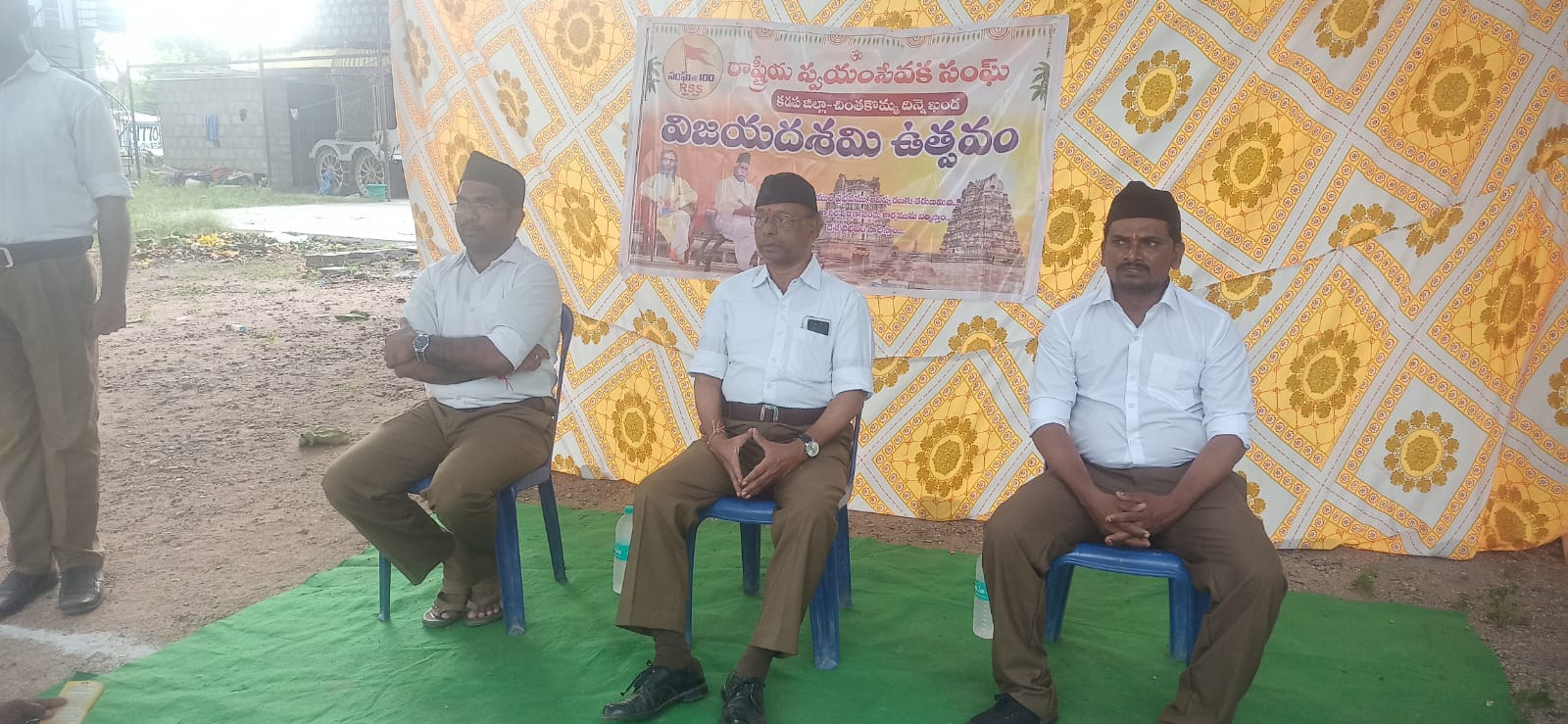 ఆర్ఎస్ఎస్ 1925లో ప్రారంభమై నేటికి 100 సంవత్సరాలు పూర్తయిందని చెప్పారు. శతాబ్ది కాలంలో ఆర్ఎస్ఎస్ సాధించిన విజయాల సందర్భంగా కడప జిల్లా చింతకొమ్మదిన్నె ఖండలోని చింతకొమ్మదిన్నె సంఘం మండలం శివాలయంలో జరిగిన విజయదశమి ఉత్సవానికి ఘనవేష్ ధరించి 105 మంది స్వయం సేవకులు పాల్గొనీ ఘనంగా నిర్వహించారు. ముఖ్యఅతిథి డాక్టర్ కుళాయి సాగర్ రెడ్డి, సంఘ మండల ప్రముఖు నాగమల్లారెడ్డి, ప్రధాన వక్త కేశవయ్య, స్వయం సేవకులు ఆయుధ పూజ చేశారు.