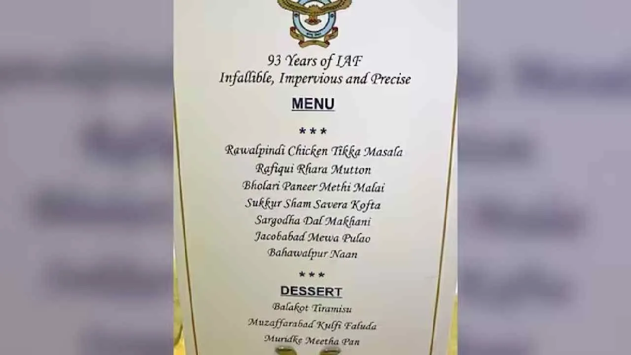 ఆపరేషన్ సిందూర్ సమయంలో పాకిస్తాన్ సైన్యం హెడ్ క్వార్టర్ రావల్పిండి లోని నూర్ ఖాన్ ఎయిర్ బేస్‌పై భారత్ క్షిపణులతో విరుచుకుపడింది. భోలారీ, స్కర్దు, రఫికీ, సుక్కూర్ లోని పలు పాకిస్తాన్ ఎయిర్ బేసుల్ని భారత్ నాశనం చేసింది. ఇక మురిడ్కే, బహవల్పూర్‌లోని ఉగ్రవాద స్థావరాలపై విరుచుకుపడింది. వీటన్నింటిని దృష్టిలో పెట్టుకుని, పాకిస్తాన్‌ను ఎగతాళి చేస్తూ ఐఏఎఫ్ మెనూను సిద్ధం చేసింది. 93వ భారత వైమానిక దళ దినోత్సవం తర్వాత అనేక మంది ఆర్మీ వెటరన్స్, జర్నలిస్టులు ఎక్స్‌లో ఈ మెనూను షేర్ చేశారు. ఇప్పుడు ఇది సోషల్ మీడియా వ్యాప్తంగా వైరల్‌‌గా మారింది.