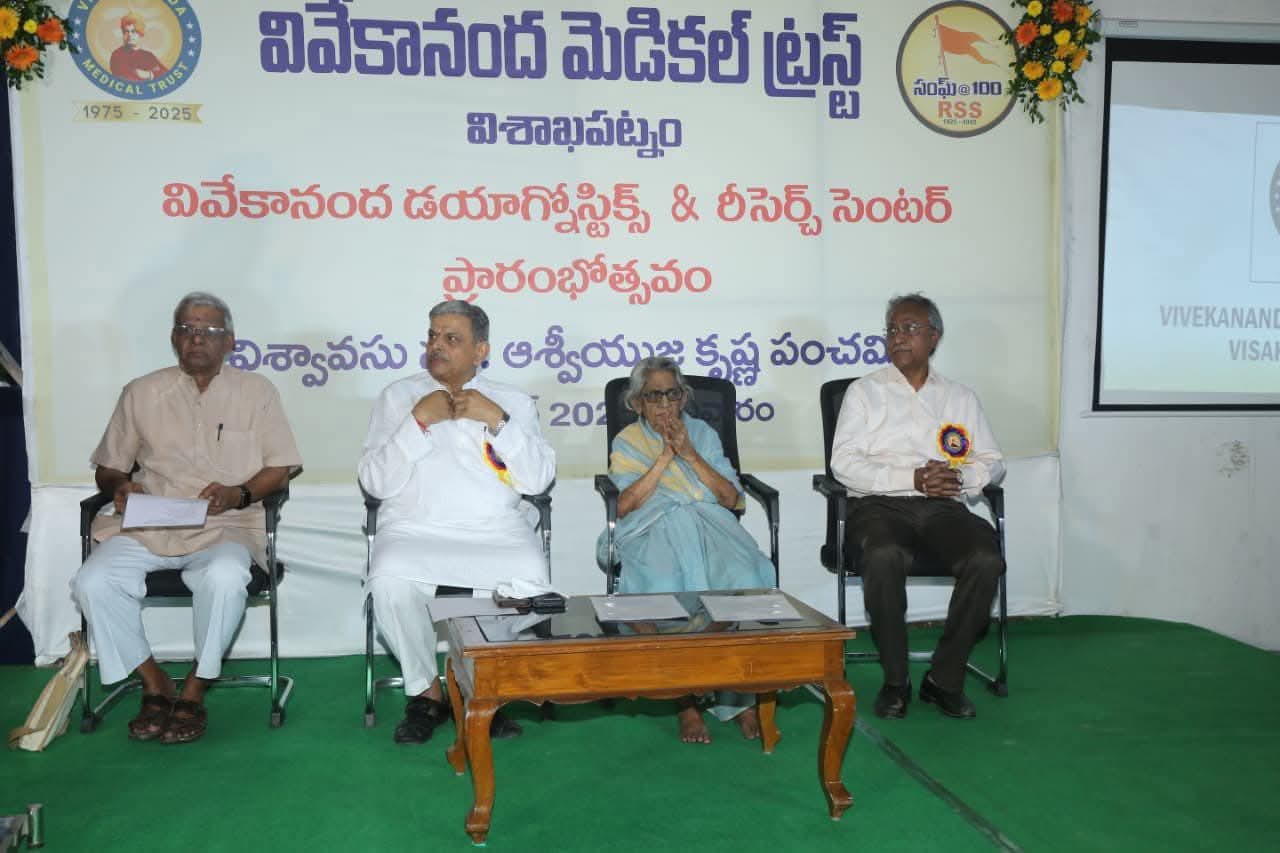 విశాఖపట్నంలో 50 ఏళ్ల పాటు నిస్వార్ధంగా వైద్యసేవలందిస్తోన్న వివేకానంద మెడికల్ ట్రస్ట్ వారి వివేకానంద డయాగ్నోస్టిక్స్ & రీసెర్చ్ సెంటర్ అత్యాధునిక ఆసుపత్రి భవనం ప్రారంభోత్సవం శనివారం జరిగింది. ఈ కార్యక్రమానికి ముఖ్య అతిధిగా రాష్ట్రీయ స్వయంసేవక సంఘ్ – ఆర్ఎస్ఎస్ సర్ కార్యవాహ దత్తాత్రేయ హోసబళే హాజరుకాగా గౌరవ అతిధిగా ఆర్ఎస్ఎస్ సహక్షేత్ర సంచాలక్ దూసి రామకృష్ణ, స్ధలదాత ప్రొఫెసర్ చిలుకూరి శాంతమ్మ హాజరయ్యారు.